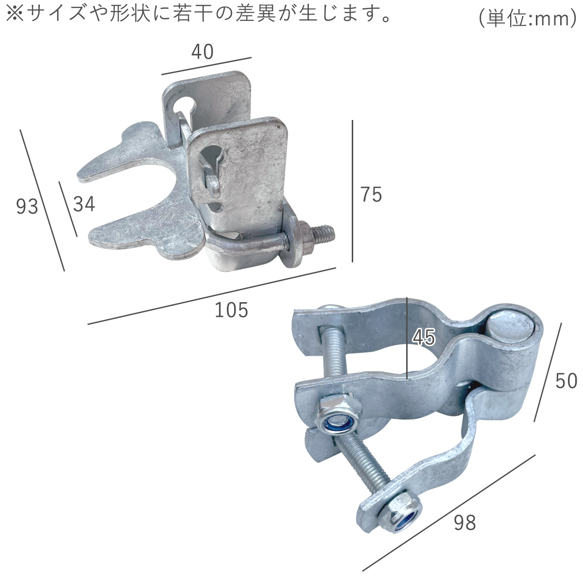 サイズ:ドアラッチA/約H75×W105×D93mm、ドアヒンジA/約H50×W98×D45mm