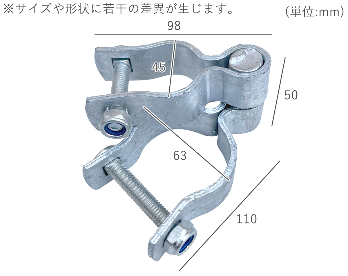 フェンスと直径48.6mmの支柱に取り付けることでフェンス扉が作成できるアメリカンフェンス専用の蝶番金具です。