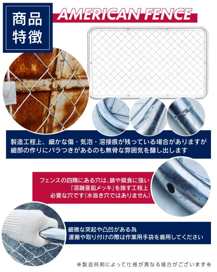 他の画像を見る パーテーション 金網 柵 ディスプレイ メタル ガレージフェンス ガーデンフェンス 「 アメリカンフェンス 1800×900mm XLサイズ シルバー 」 販売価格 ¥ 12,760 税込 詳細を見る お気に入りに登録する (0)