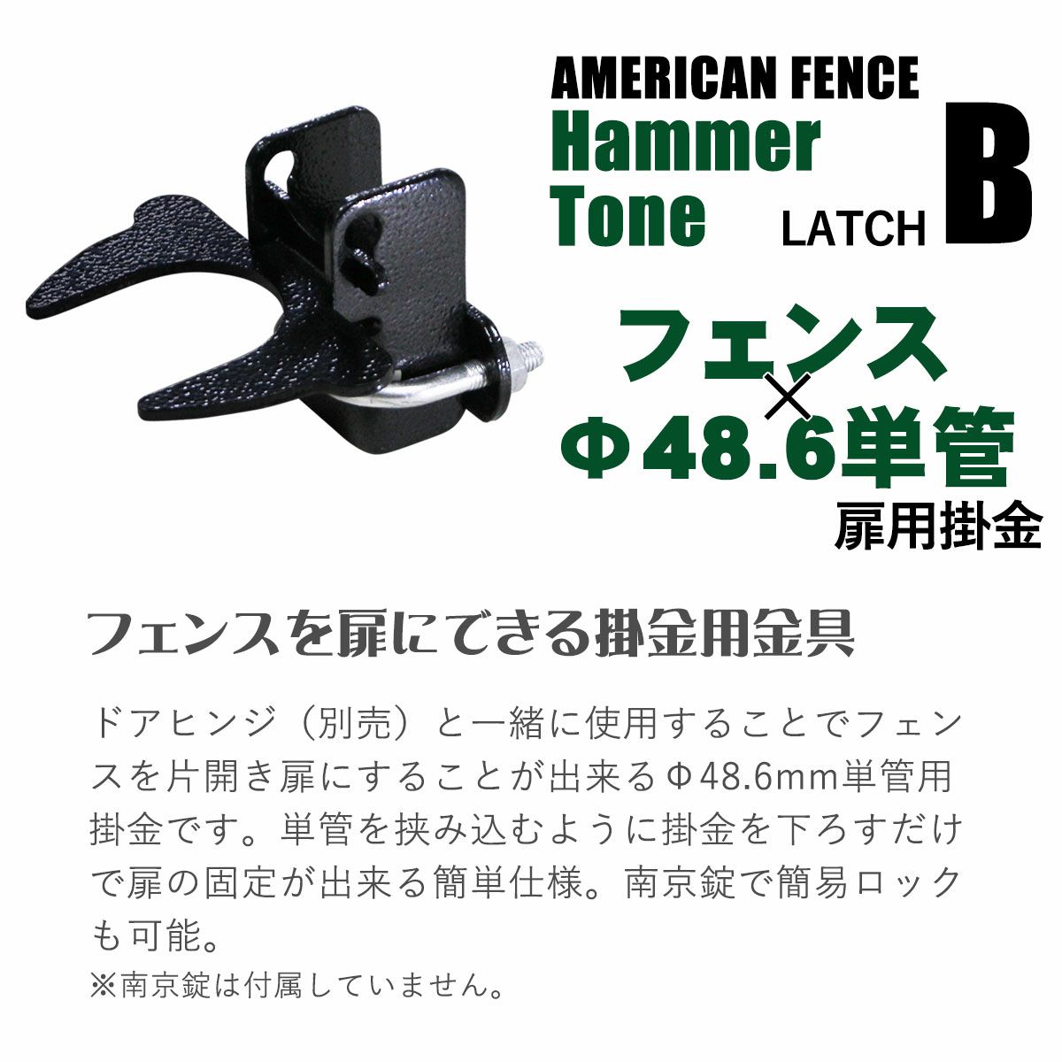 フェンスおしゃれ かっこいい パーテーション ガレージ DIY 金網 柵 かんぬき 掛け金 ハンマートーンブラック 男前 西海岸 フェンス カリフォルニア 「 アメリカンフェンス 扉金具セットB(Φ48.6mm用) ハンマートーンブラック ( ヒンジB2個+ラッチB1個) 」