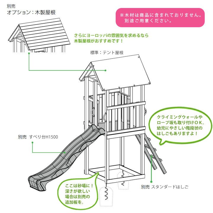 他の画像を見る DIY 屋外 木製 家庭用遊具 木製櫓 やぐら 子供基地 自作 お庭遊園地 子供用 運動 遊び 木製 櫓(やぐら)型遊具 レイキモッキ 「はらっぱBASE(エコアコールウッドセット) ※滑り台、はしご別売り はらっぱギャング」 販売価格 ¥ 288,200 税込 詳細を見る お気に入りに登録する (0)
