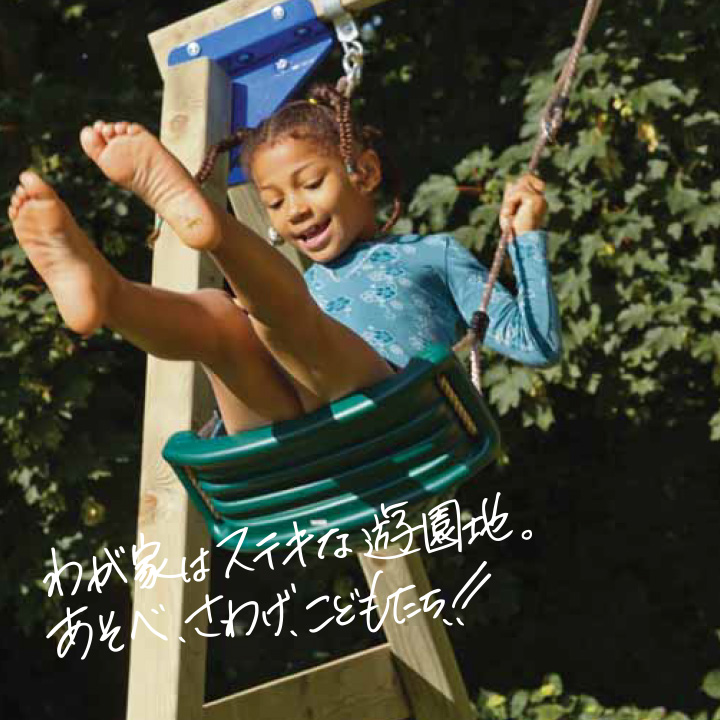別売りのブランコは色んな種類があるので、用途やお好みで選んでくださいね。ブランコの他にクライミングロープや縄ばしごも取り付けることができますよ。