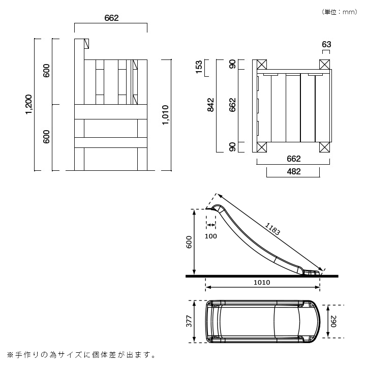 素材:エコアコールウッド、高密度ポリエチレン、他