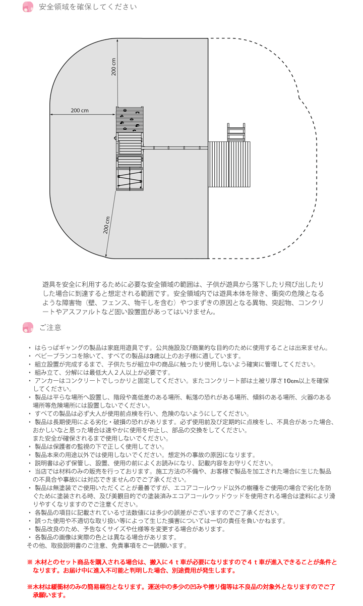 ※ブランコは付属しておりませんので、別途ご用意下さい。