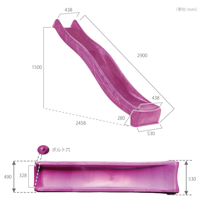 ※すべり台固定用のボルトは付属していません。お客様でご用意ください。(5~6mmの皿ねじ2本)