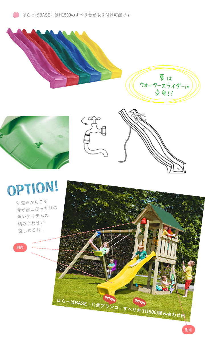 滑り台にホースをつなげればウォータースライダーにすることができるんです。これ絶対楽しいでしょ!