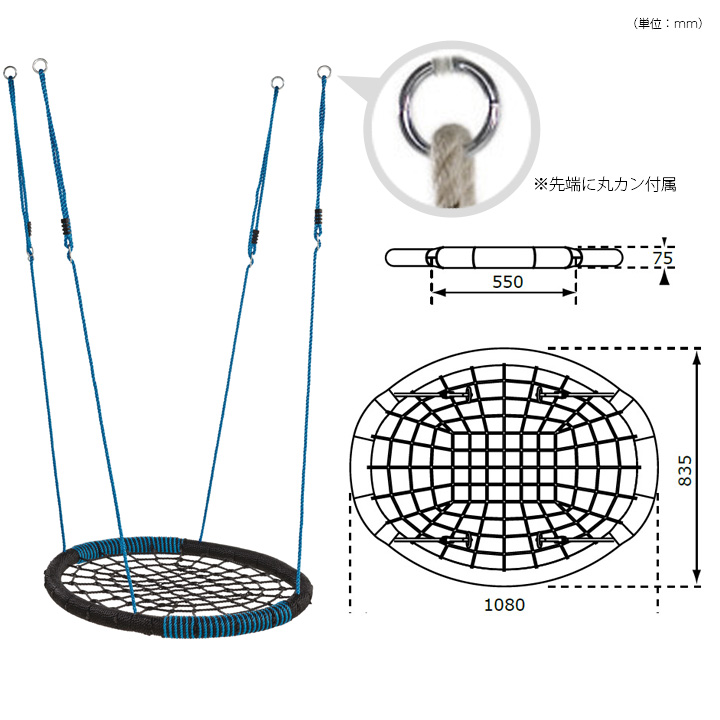サイズ:座面/W約1080×H約75×D835mm、PPロープ/直径10mm