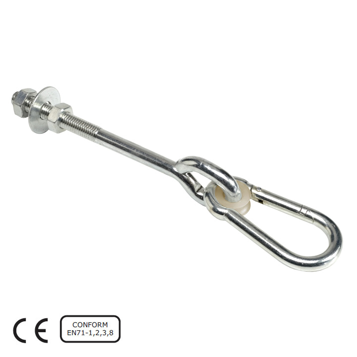 すでにある梁へのブランコの取付には、貫通タイプの吊り金具がおすすめ。穴をあけて通すだけでワンタッチでブランコやロープなどが設置できます。