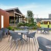 耐紫外線・耐候性があり屋外での使用に向いています。樹脂にガラスファイバーを混ぜ合わせて強度を高めているためているため、カフェテラスやレストランなどの商業施設にも使用可能です。