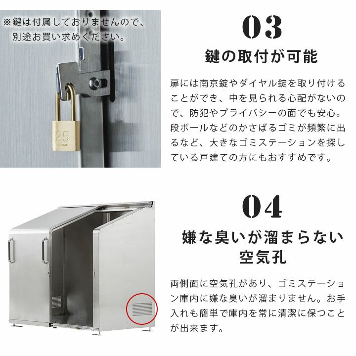他の画像を見る ごみ箱 屋外 外用 大型 置き型 置き配 ダストボックス 宅配ボックス おしゃれ 一軒家 一戸建 店舗用 おもちゃ箱 雨対策 カラス対策 ダストボックス ゴミ収納庫 家庭用ゴミ収納庫 「ゴミステーション ホームスライド02 プレミアムモデル オールステンレス 150L」 (SG) 当店通常価格 ¥ 323,400 販売価格 ¥ 226,380 税込 詳細を見る お気に入りに登録する (0)