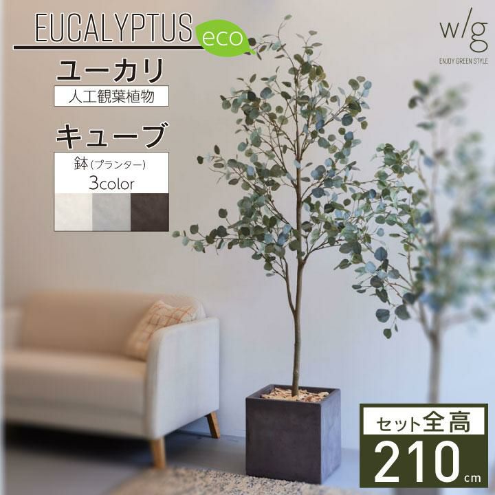おしゃれ リアル お祝い 新築祝い 新居祝い 転居祝い 引越し祝い 開店祝い 開業祝い 事務所 移転 プレゼント ギフト 贈り物 屋内 室内 鉢 人工樹木 造花 ナチュラル モダン 「丸葉ユーカリL×キューブ w/g-eco」