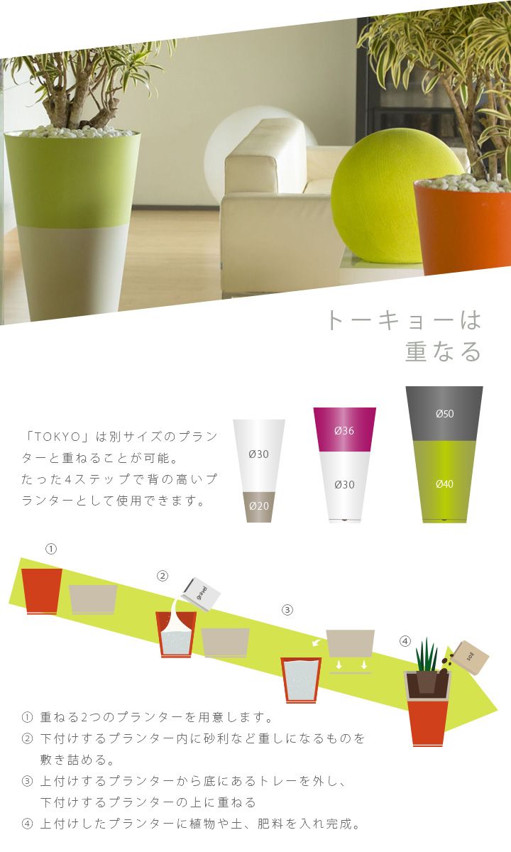 シンプルながらも高い質感を持った樹脂製プランター「TOKYO」。