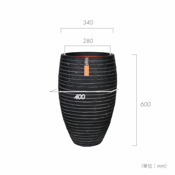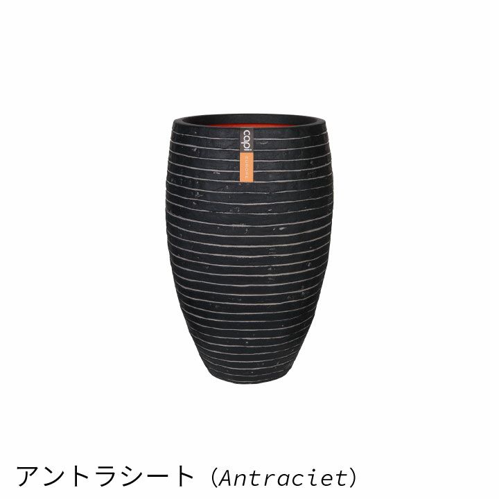 kofi1131-1 kofi1131-1-1 オランダ プランター プランターカバー 花瓶 エコ ガーデニング 「カピ(Capi) ネイチャーリブ ベースデラックス(NatureRib EggPlanter) Φ40×H60cm」13号鉢相当/特大・大型/アントラシート・アイボリー/底穴なし/植木鉢 おしゃれ 軽量