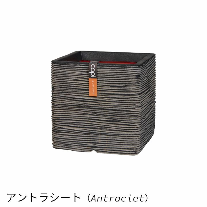 kofi904-0 kofi904-1 オランダ プランター プランターカバー 花瓶 エコ ガーデニング 「カピ(Capi) ネイチャーリブ スクエア(NatureRib Square) Lサイズ(□50×H50cm)」16号鉢相当/特大・大型/アントラシート・アイボリー/底穴なし/植木鉢 おしゃれ 軽量