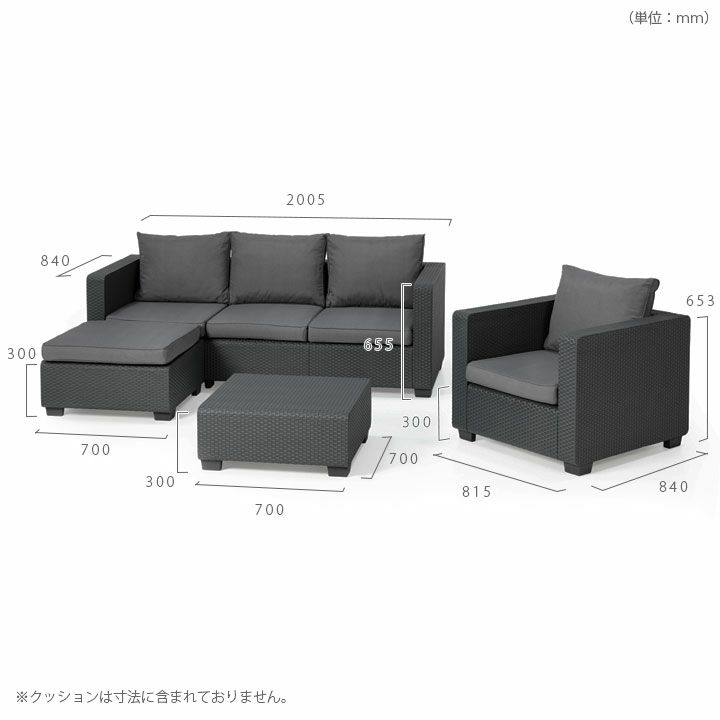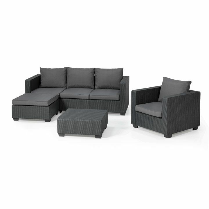 KETER ガーデンファニチャー リゾート ラタン風家具 チェア テーブル 樹脂 屋外用 室外用 ロースタイル 「4点セット 3人掛けガーデンソファー・アームチェア・フットスツール(オットマン)・テーブル ケター (KETER) サルタ」【単品販売可】