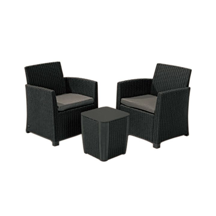 KETER ケター 屋外家具 ガーデンファニチャー チェア テーブル ストレージ 収納 セット コロナ CORONA 樹脂製籐編み調ファニチャー「ケター (KETER) ミア バルコニー 3点セット(MIA BALCONY 3SET)」