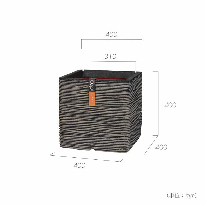 P101B-2 P101B-2-1 オランダ プランター プランターカバー 花瓶 エコ ガーデニング 「カピ(Capi) アーバンスムース スクエア(UrbanSmooth Square) Mサイズ(□40×H40cm)」13号鉢相当/特大・大型/ブラック・ダークグレー/底穴なし/植木鉢 おしゃれ 軽量