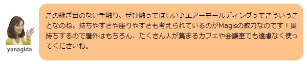 エアチェアの細部は太めに丸みがついていて、立ち上がる時にも、持ち運びにも便利!