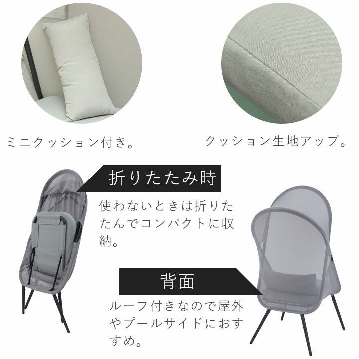他の画像を見る リゾート ルーフ 日除け シェード チェア 椅子 いす リラックス くつろぐ 大きめ 大きい ゆったり チル チルアウト 整う 整い椅子 アウトドアチェア メッシュ 折りたたみ可能なガーデンチェア「日よけ付き フォールディングチェア リーラ」 クッション付き 当店通常価格 ¥ 59,400 販売価格 ¥ 28,600 税込 詳細を見る お気に入りに登録する (0)