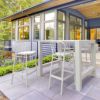 耐紫外線・耐候性があり屋外での使用に向いています。樹脂にガラスファイバーを混ぜ合わせて強度を高めているためているため、対面式のカフェやカウンターバーなどの商業施設にも使用可能です。
