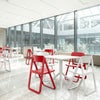 「SE ドリーム フォールディング チェア」は折りたたんで平置きすれば10脚までスタッキングが可能。