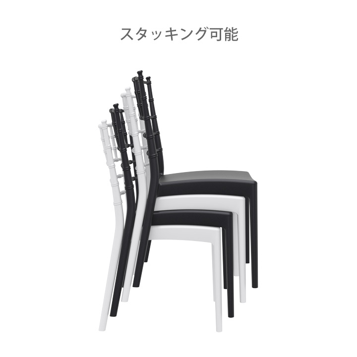 「SE ジョセフィーヌ スタッキング ウエディングチェア」は4脚までスタッキングが可能。