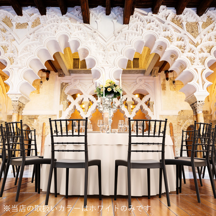 品格を感じるエレガントなフォルムが特徴の「SE ジョセフィーヌ スタッキング ウエディングチェア」。