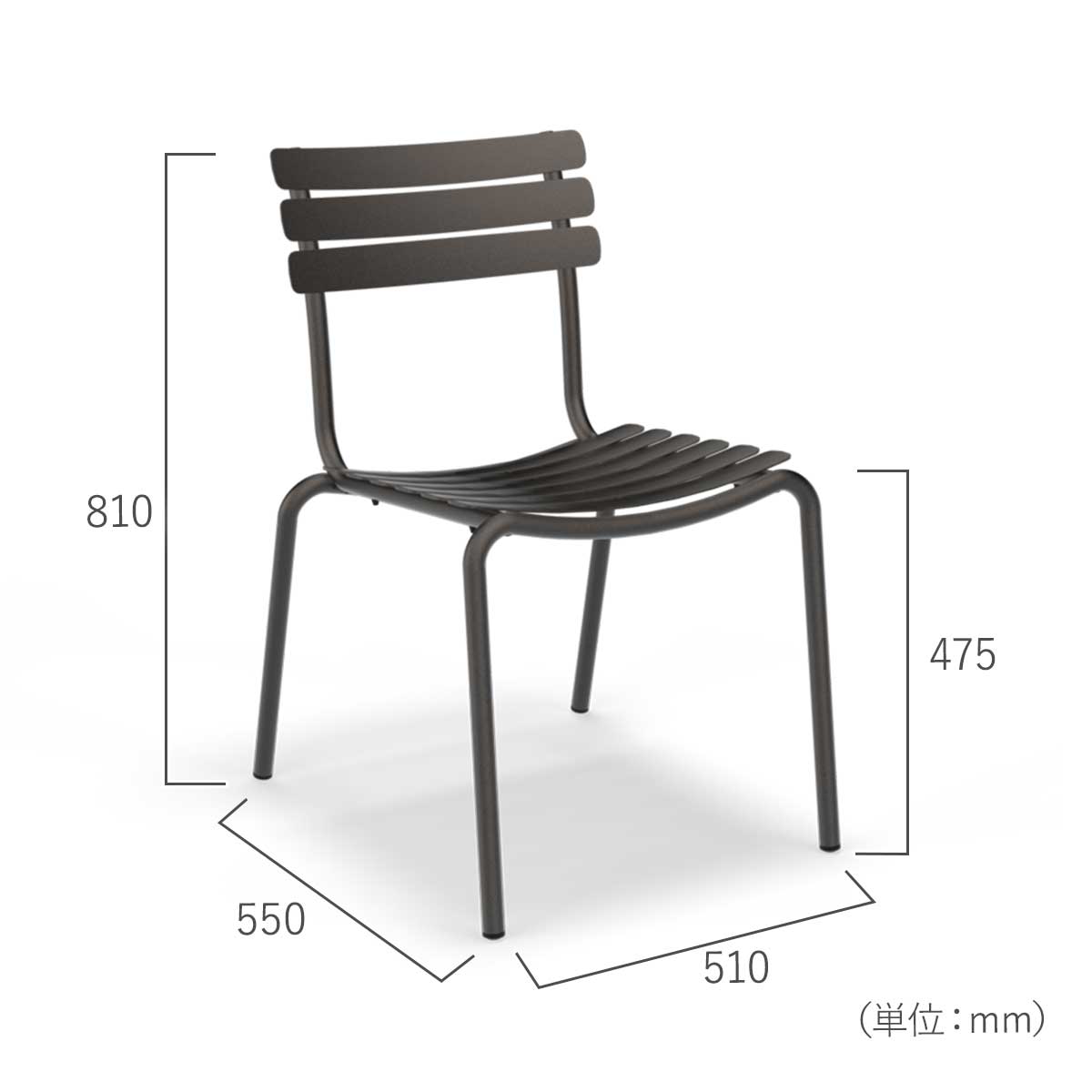お庭やバルコニー、カフェなど様々な環境に対応する多用途アルミ製ダイニングチェア。座面がゆるやかなカーブを描いていて快適な座り心地です。
