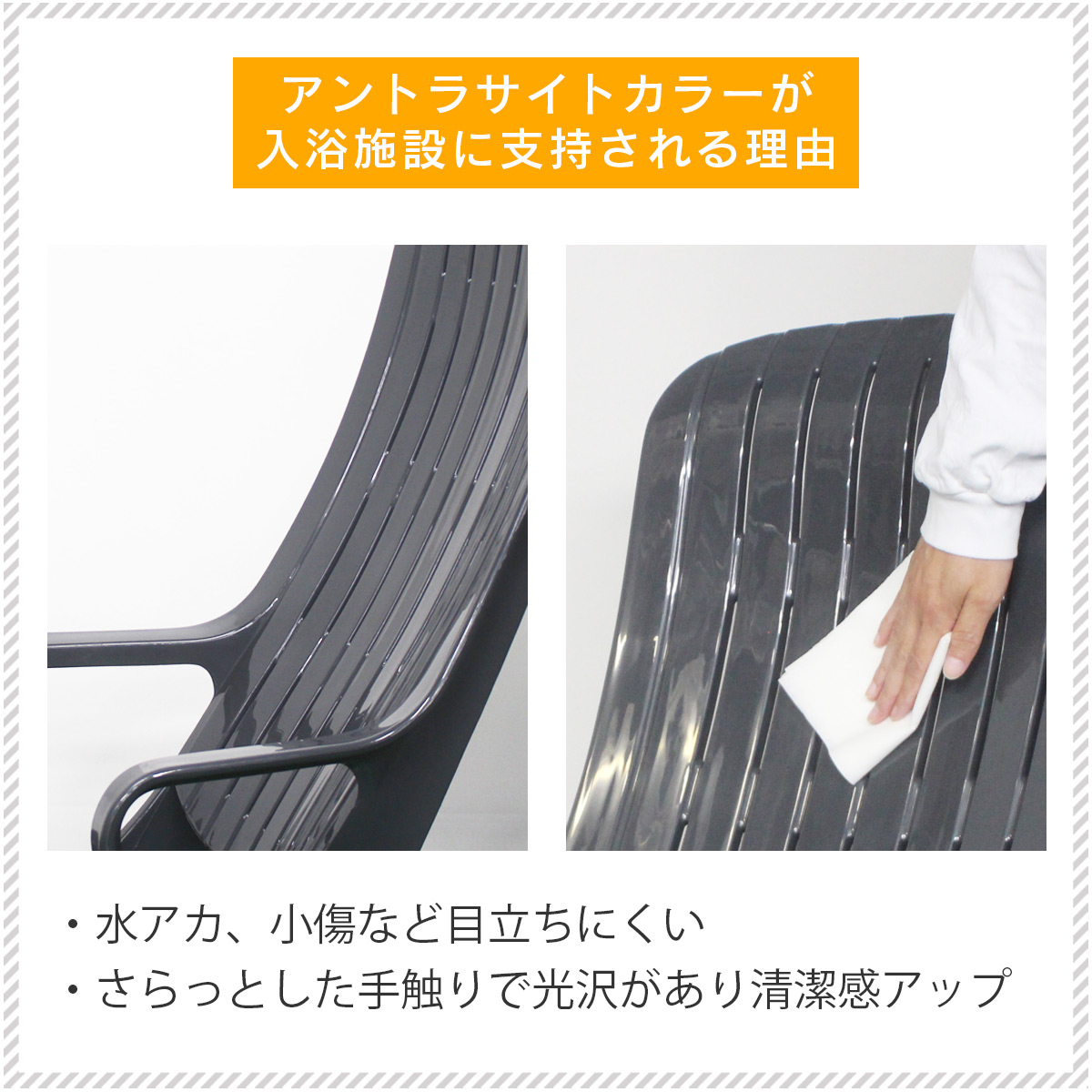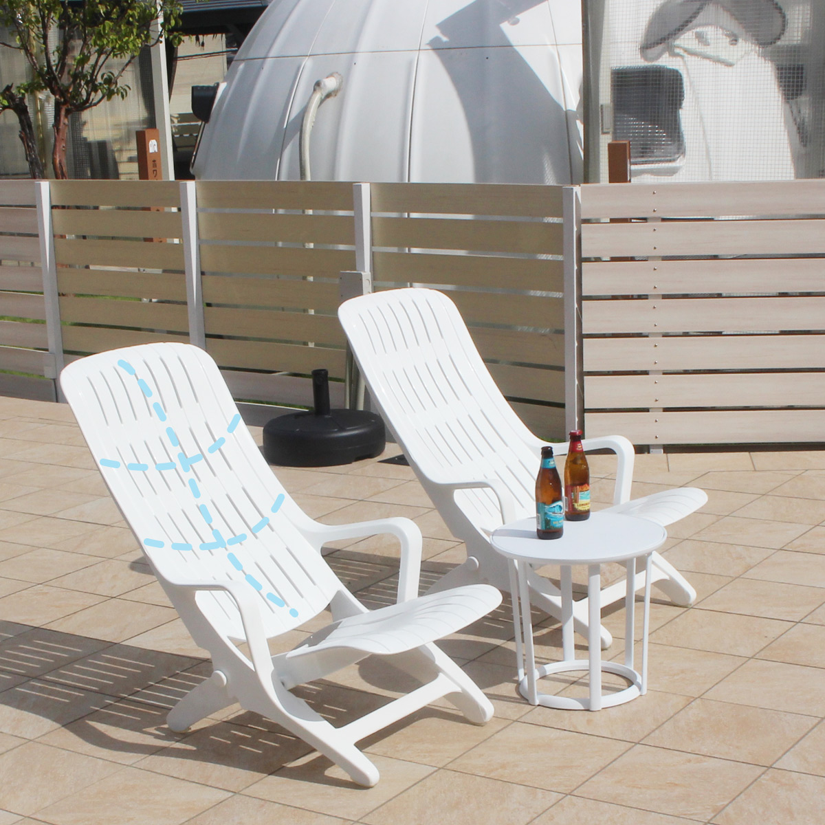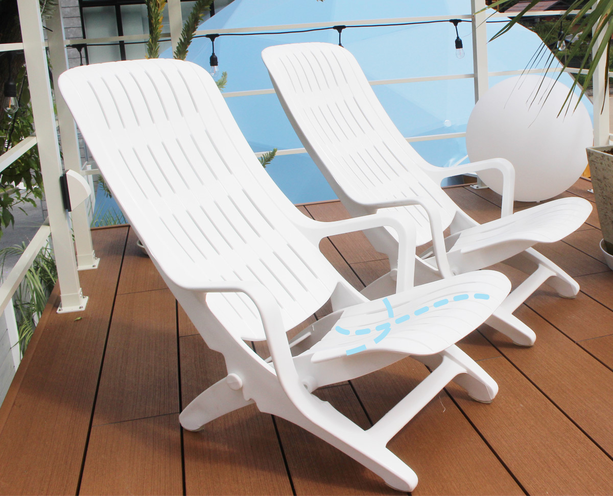 シンプル&ナチュラルなデザインで、お庭やテラスはもちろんプールサイドや温泉施設でも大活躍します。