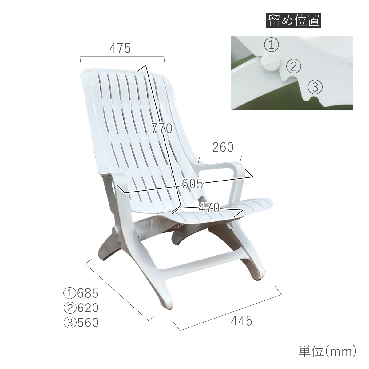 耐荷重:背もたれ/70kg・座面/160kg
