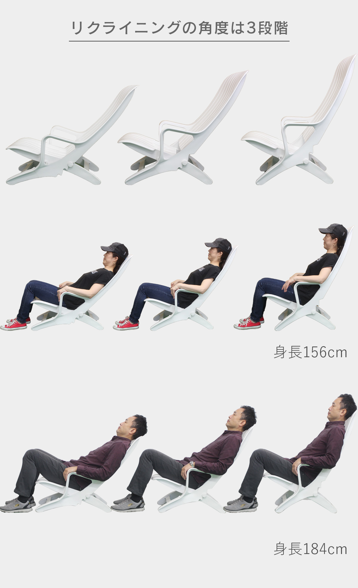 3段階のリクライニング設定が可能なエスタンザ。