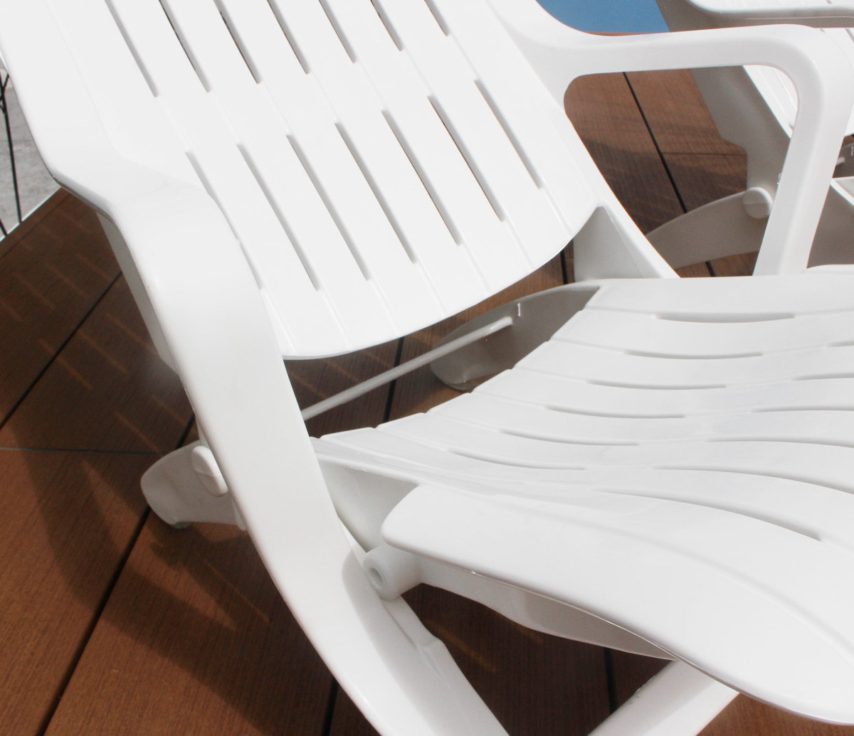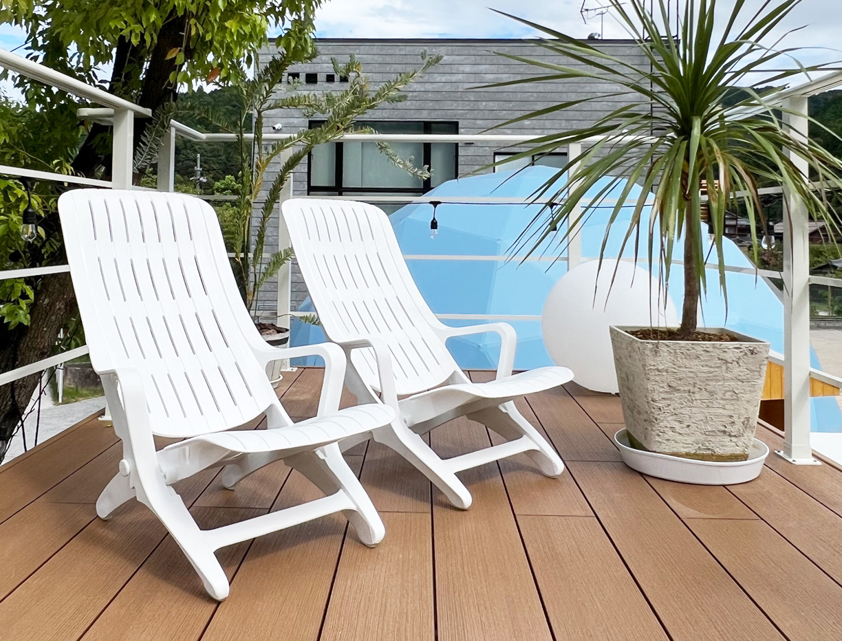 シンプル&ナチュラルなデザインで、お庭やテラスはもちろんプールサイドや温泉施設でも大活躍します。