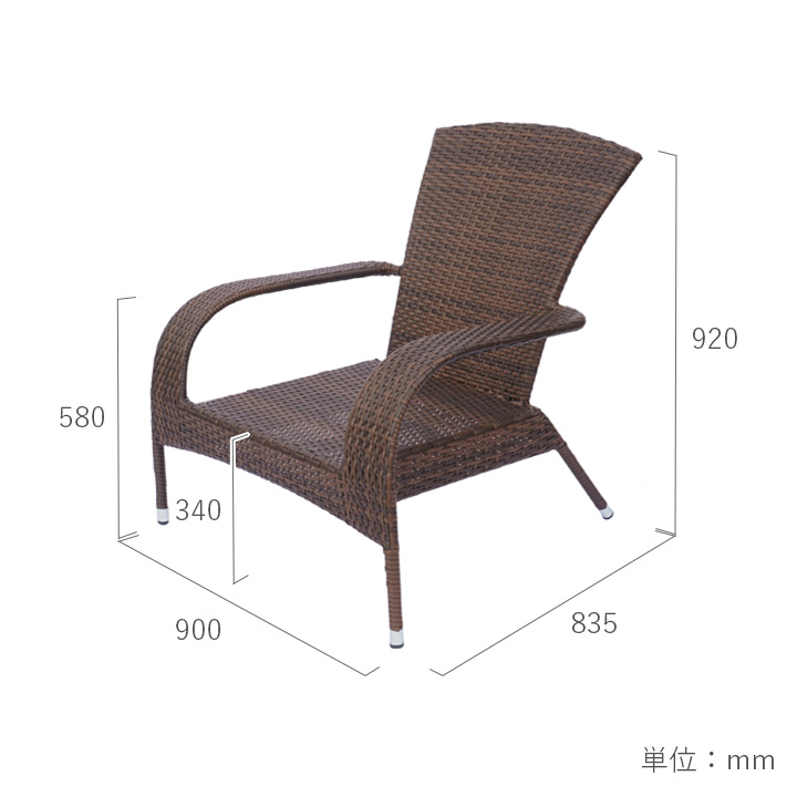 座面高34cmでゆったり座れる人口ラタンを使用したラウンジチェアです。