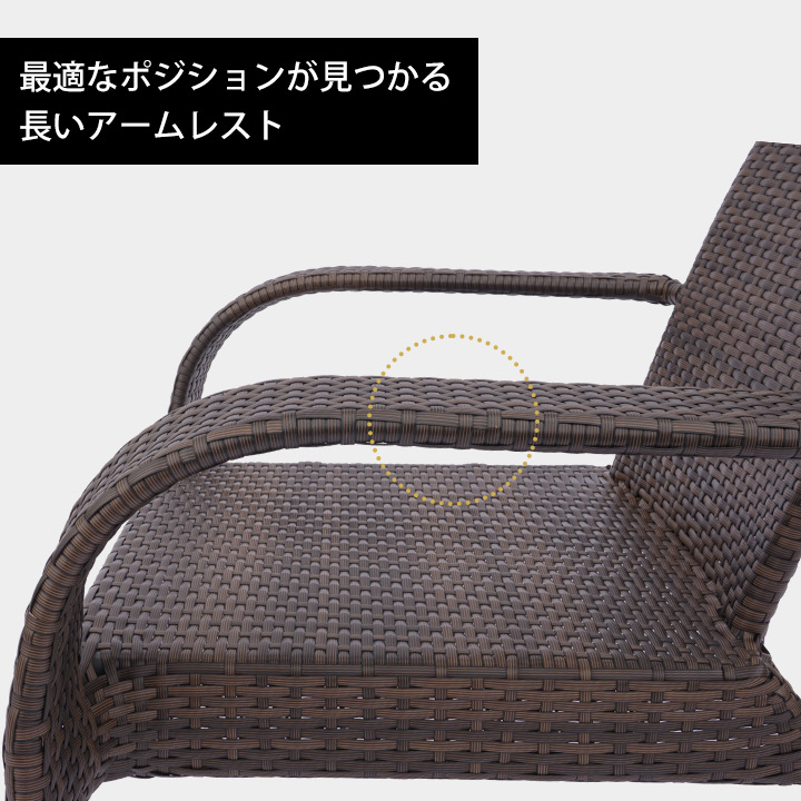 屋外での使用に適しており、雨が編み込みの隙間から下に落ちるため、雨天明けの拭き掃除も楽に行えるなどメンテナンス性も高いのが魅力です。