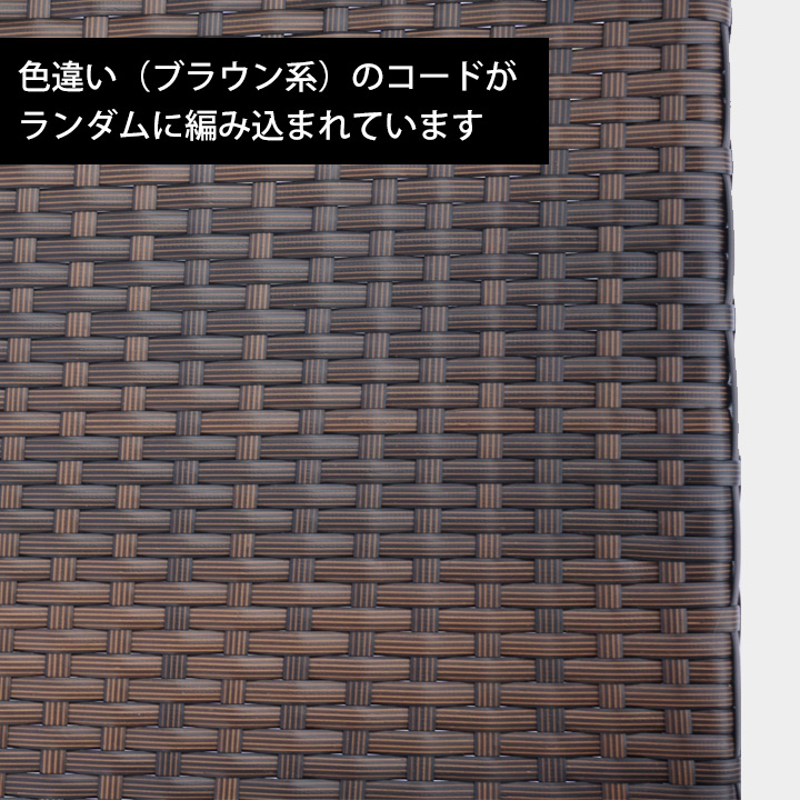 コードのカラーはブラウン系ですが、より自然なラタンの色合いに近づけるため、濃淡を付けてランダムに編み込まれています。
