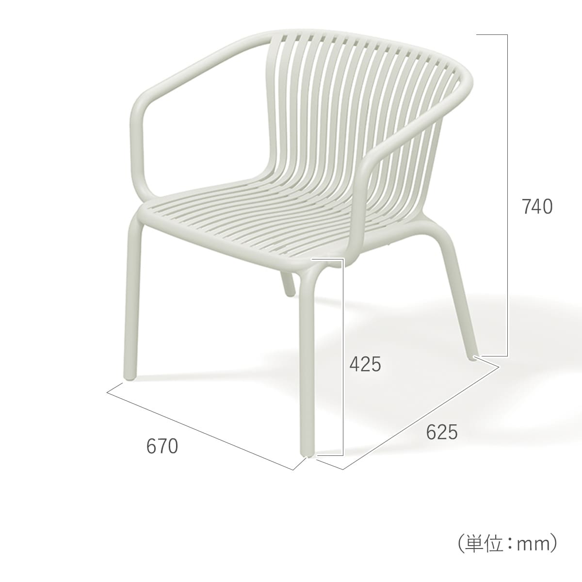 耐久性があり軽量なプラスチック家具です。スタッキング(積み重ね)可能でコンパクトに収納できます。
