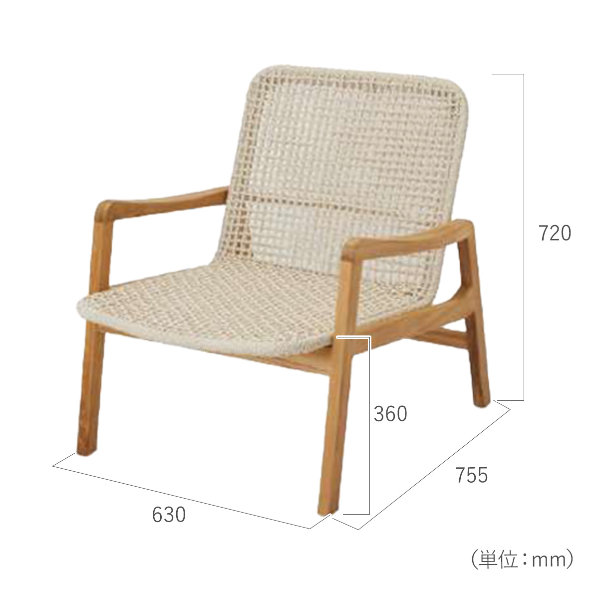 サイズ:約W630×D755×H720mm/SH360mm 素材:チークウッド、メッシュ生地 重量:約8.5kg(多少の誤差があります) 備考:完成品