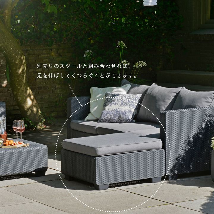 他の画像を見る KETER ガーデンファニチャー リゾート ラタン調 家具 ソファ ローテーブル ダイニングテーブル 樹脂 屋外用 室外用 ROSALIE CORNER SOFA WITH LYON TABLE SET ガーデンファニチャーセット 「ケター エマ (KETER EMMA) 2人掛けスムースアームソファー&リヨンテーブル 4点セット 149325」 販売価格 ¥ 49,500 税込 在庫切れ 詳細を見る お気に入りに登録する (0)