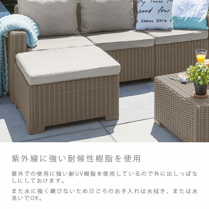 他の画像を見る KETER ガーデンファニチャー リゾート ラタン風家具 ソファ チェア テーブル スツール 樹脂 屋外用 室外用 「4点セット 3人掛けソファー・アームチェア・フットスツール・テーブル ケター モーレア(KETER Moorea 154473・154282)」カプチーノ(ブラウン) ローソファー 販売価格 ¥ 99,000 税込 〜 販売価格 ¥ 税込 在庫切れ 詳細を見る お気に入りに登録する (0)