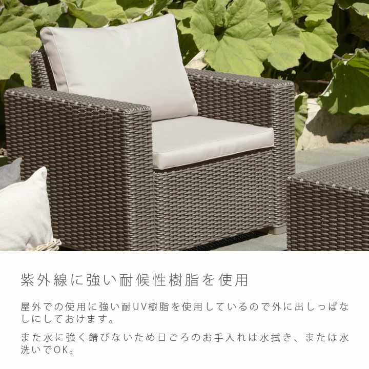 他の画像を見る ガーデンファニチャーセット ガーデンソファ ガーデンテーブル クッション付き 屋外家具 1人用 2人用 3人用 4人用 ラタン調 籐編み風 樹脂製 水洗い可能 3~4人用ガーデンファニチャーセット「ラターノ ガーデンソファ&テーブル 4点セット」 当店通常価格 ¥ 110,000 販売価格 ¥ 66,000 税込 詳細を見る お気に入りに登録する (0)