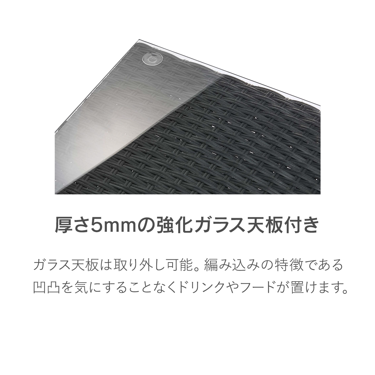 素材:スチール、ポリエチレン、ポリエステル、5mm強化ガラス