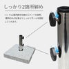 ポール直径34~51mmのパラソルに対応し、55kgの重量でしっかり固定してくれます。