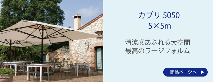 タテ・ヨコのキャンパス部が最大6mの開放的な大型パラソルです。