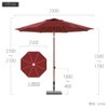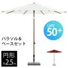 サイズ:パラソル本体(オープン時・土台無し時)/W約2500×D約2500×H約2010~2610mm、パラソル(土台含む)/H約2100~2700mm、ポール/上部直径38mm 下部直径35mm、ベース(差込口除く)/W500×H80×D500mm