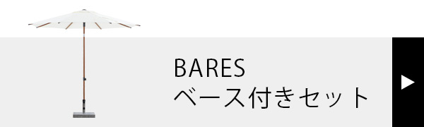 温かみのある木目フレームが特徴の「BARES」は、ナチュラルな雰囲気に合わせやすいスタンダードなフォルムに快適に過ごすための機能を搭載したハイクオリティなガーデンパラソルです。