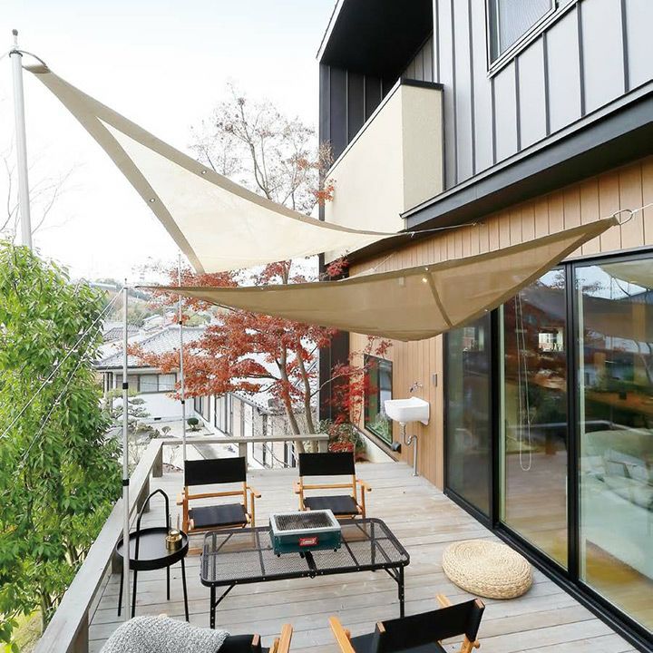 2枚重ねることでより遮光率を高められるので、軒下でBBQやランチ等快適に過ごせます。