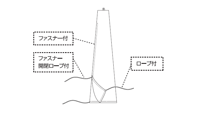 使い方は簡単。ファスナーを開けて、閉じたパラソルの上部から被せて閉じるだけ。