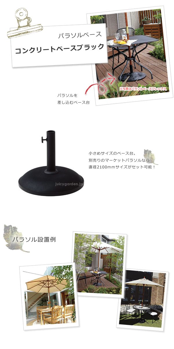 今日の日本でパラソルはまぶしい日差しから人々を守り、快適な空間を提供するガーデンにおいての必須アイテムとなっています。そんなパラソルを固定する為の必需品がパラソルベースです。