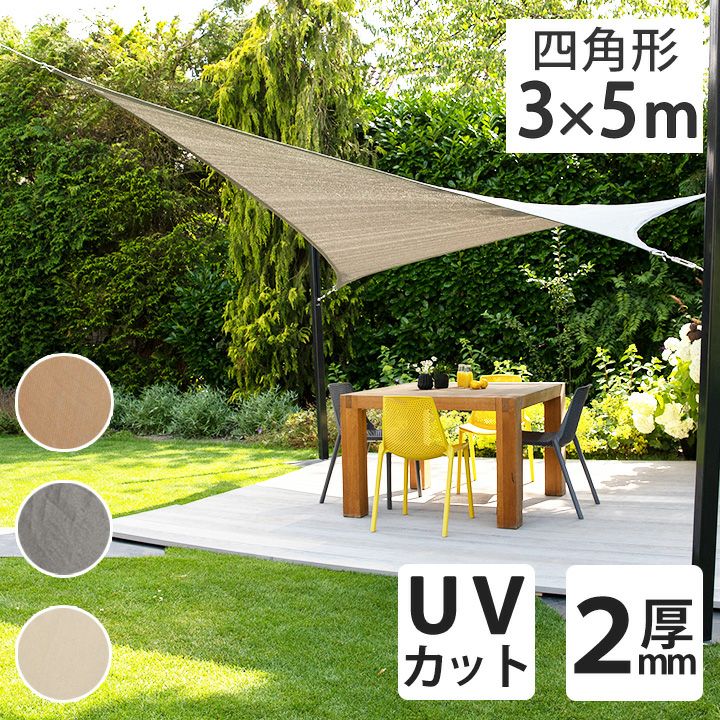 三角形や長方形のシェードを2枚組み合わせて、個性的でおしゃれにお庭をコーディネートしてみてください。