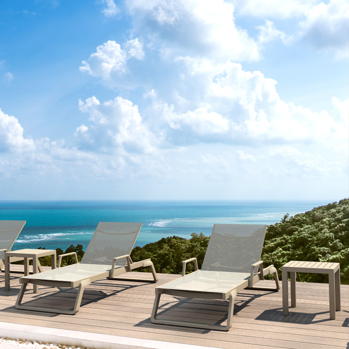 ガーデンチェアやサンラウンジャー横にちょうどいいサイズの「SE OCEAN エスイー オーシャン サイドテーブル 45×45cm」